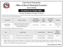 गजुरी गाउँपालिकामा फोहोरमैला व्यवस्थापनको लागि पूर्वाधार निर्माण कार्यको बोलपत्र आव्हान सम्बन्धी सूचना। प्रथम पटक प्रकाशित मिति: २०८२/०८/०३ गते ।