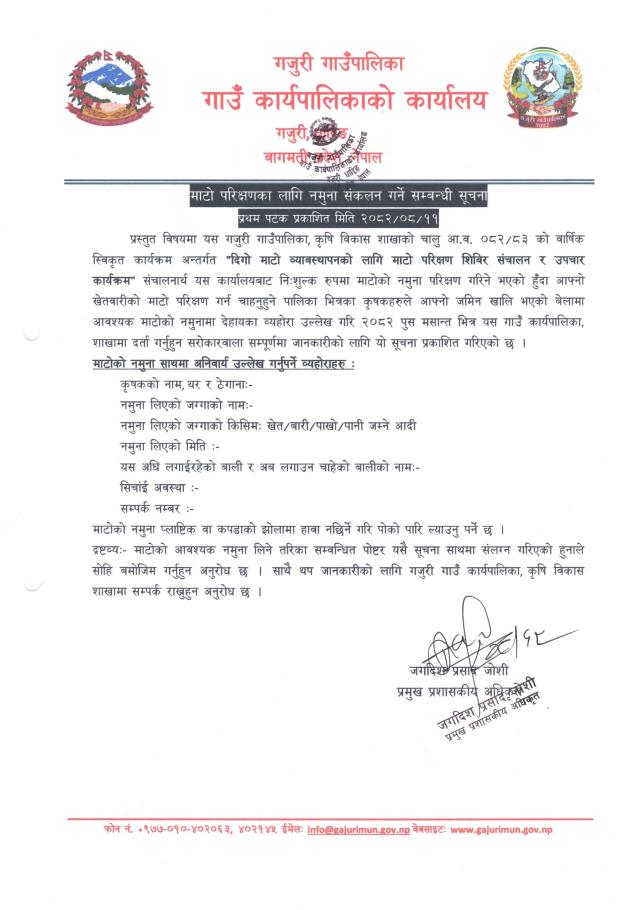 » माटो परीक्षणका लागि नमुना संकलन गर्ने सम्बन्धी सूचना ।