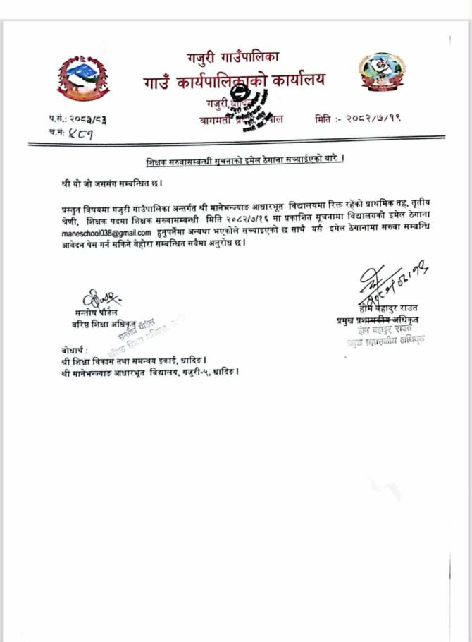 » शिक्षक सरुवासम्बन्धी सूचनाको इमेल ठेगाना सच्याइएको बारे ।