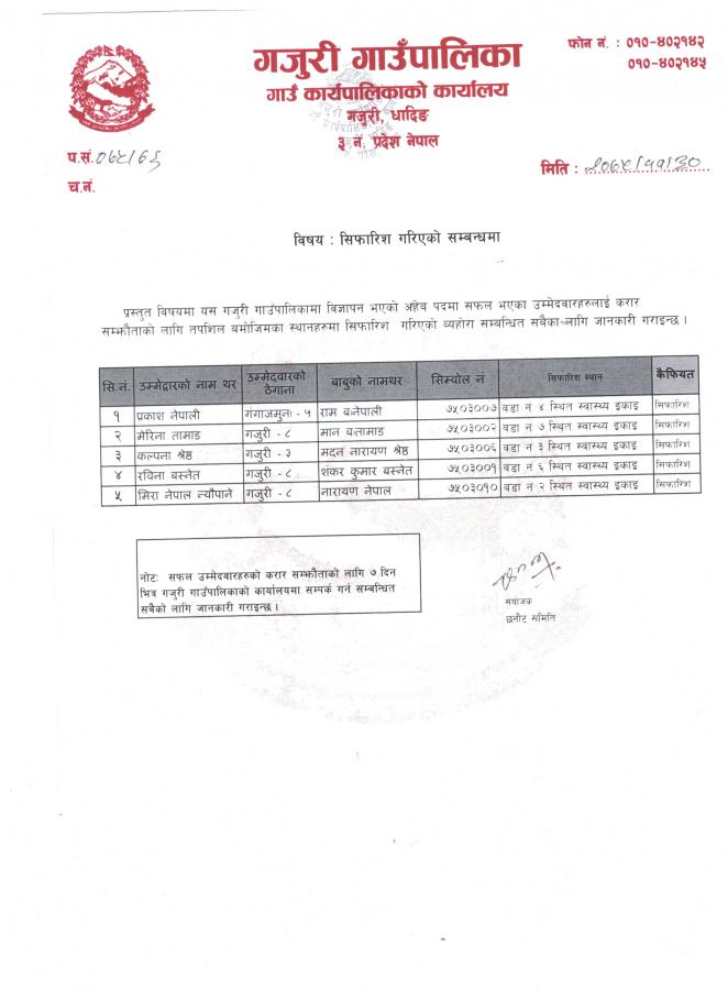 अ. हे.ब पदकाे सिफारिश गरिएकाे सम्बन्धमा