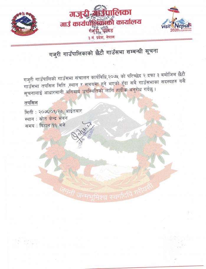 गजुरी गाउँपालिकाकाे छैटाै गाउँसभा सम्बन्धी सूचना