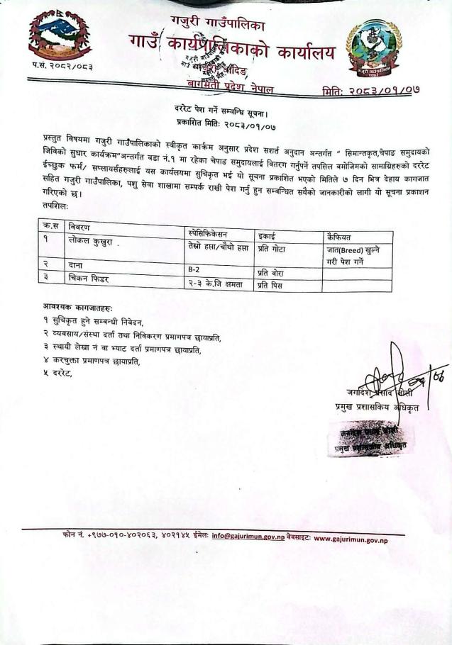 मिटमार्ट सुदृढीकरण कार्यक्रम (मासु पसल सुधार कार्यक्रम) संचालनका लागि प्रस्ताव पेश गर्ने सम्बन्धी सूचना । तेस्रो पटक प्रकाशन मिति: २०८२/११/२९