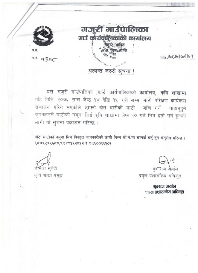 » माटो परिक्षण सम्बन्धि अत्यन्त जरुरी सूचना (कृषि सेवा केन्द्र)